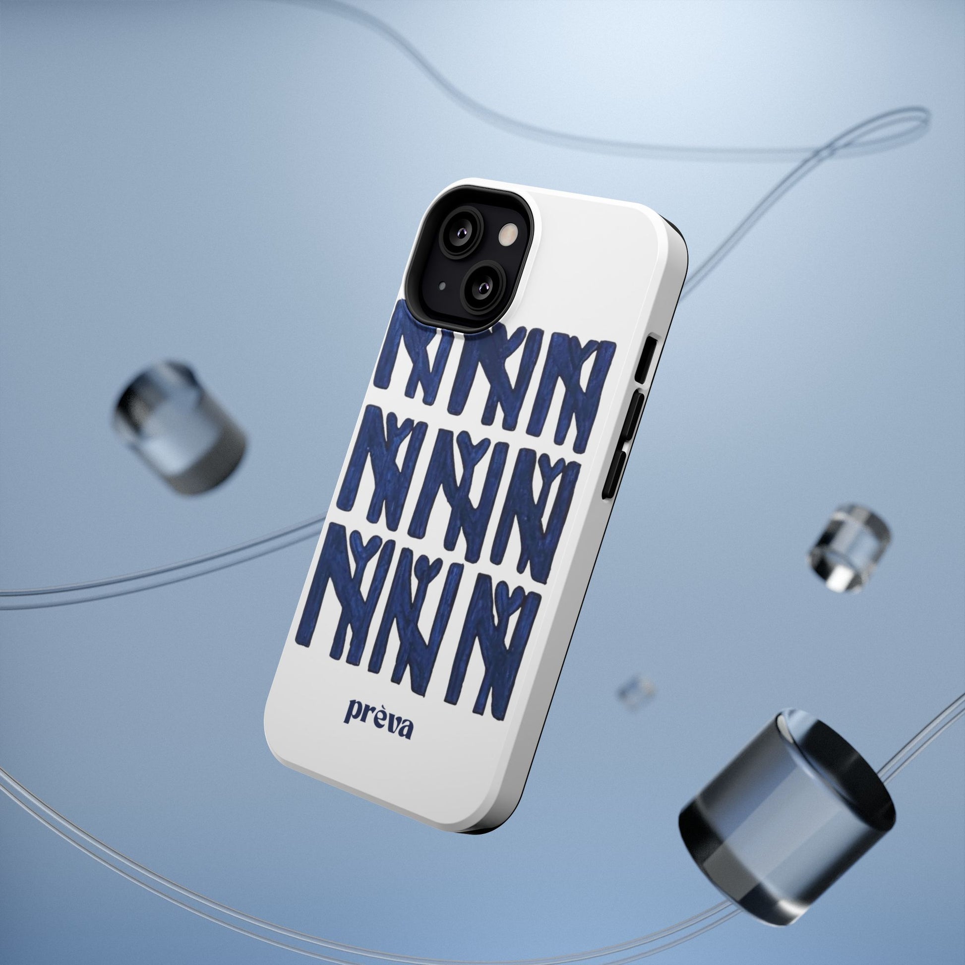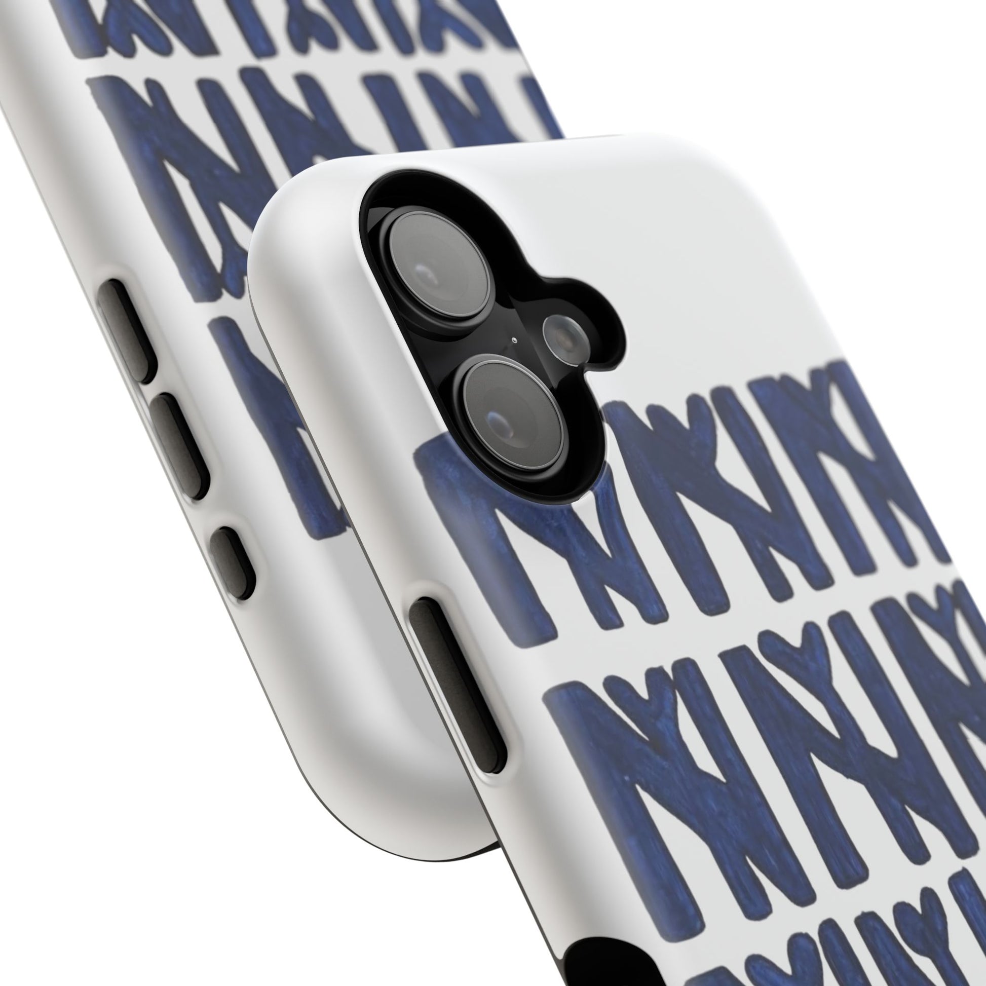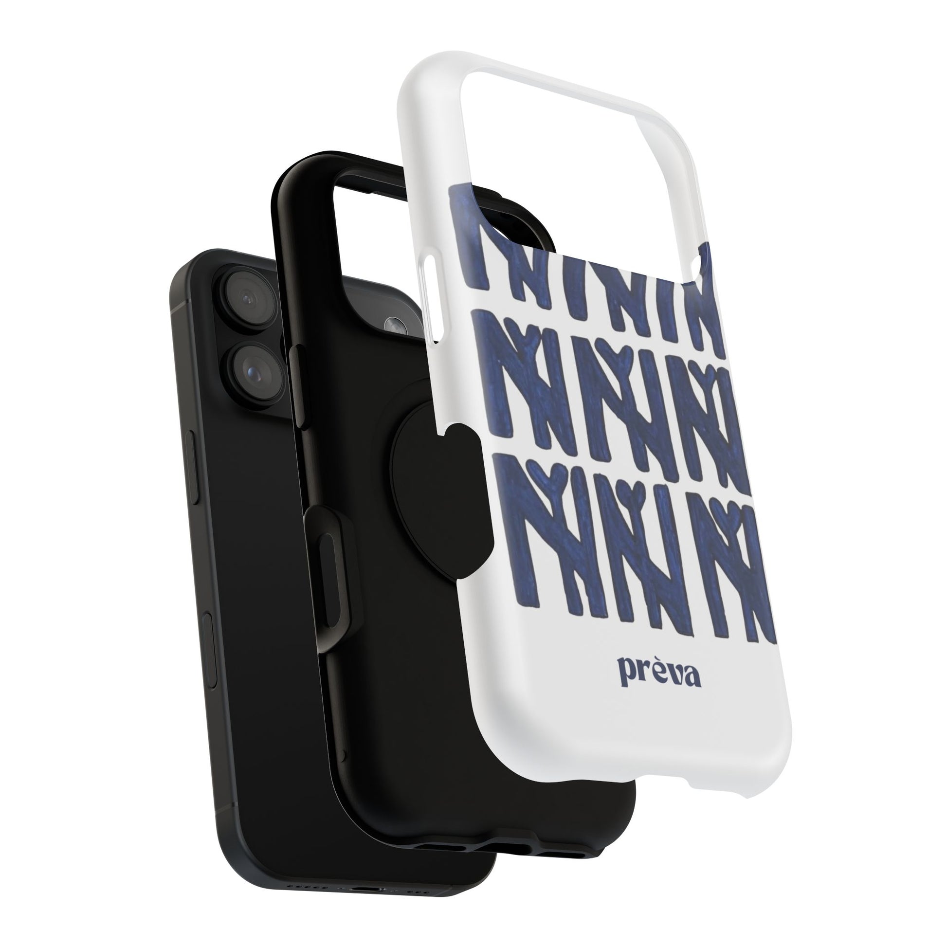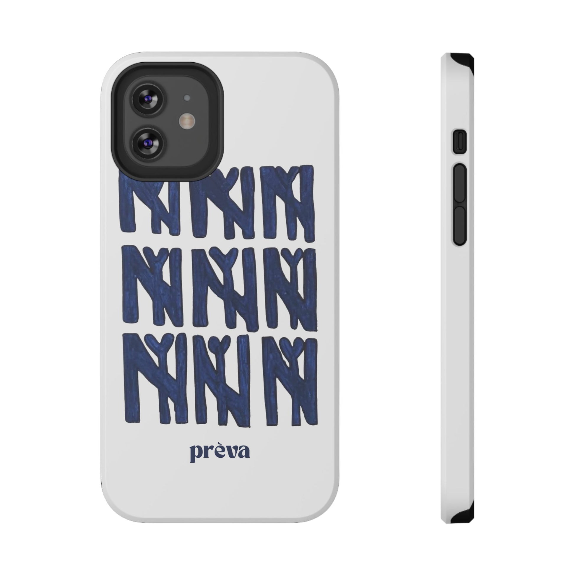 A sleek, protective phone case that balances serious defense with playful, handmade style. The dual-layer shell guards against everyday drops while the full-wrap print showcases a bold, hand-painted repeat motif in deep navy. It wears like an everyday tool—confident, artful, and quietly personal—so your phone looks as considered as the person holding it.