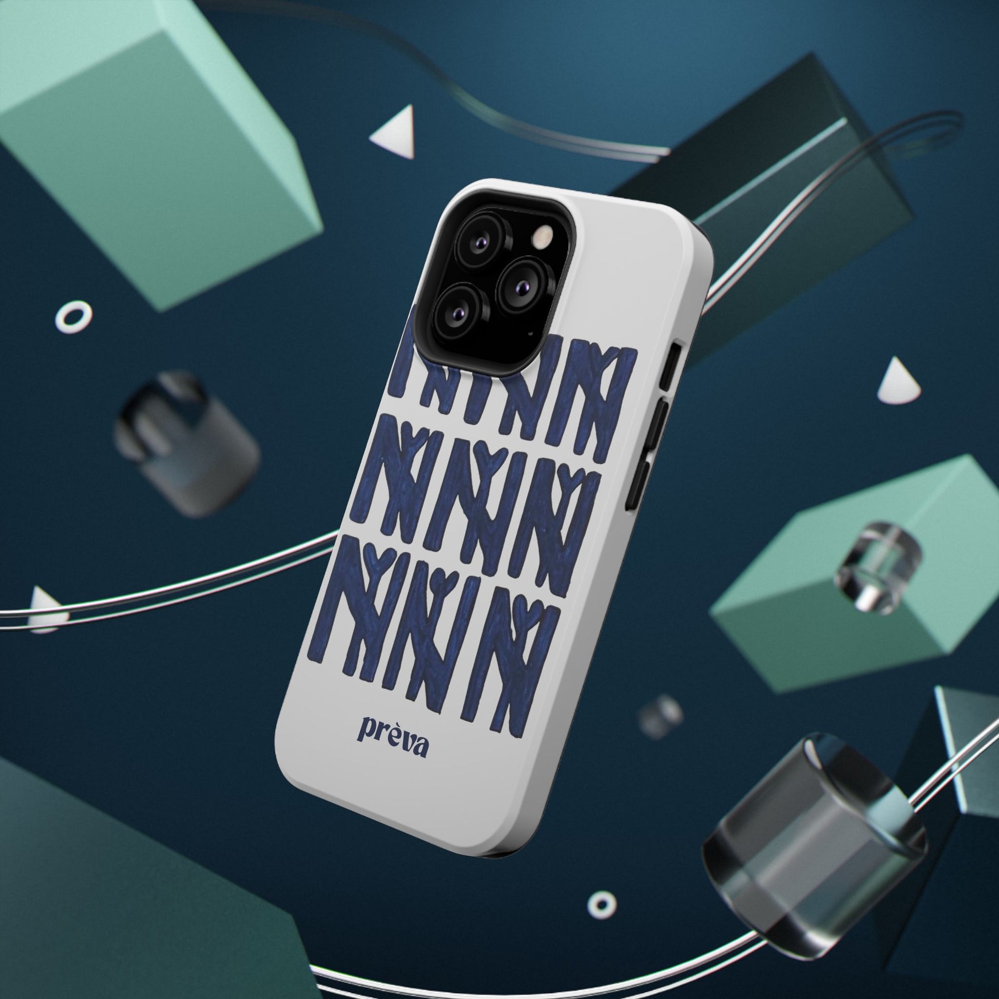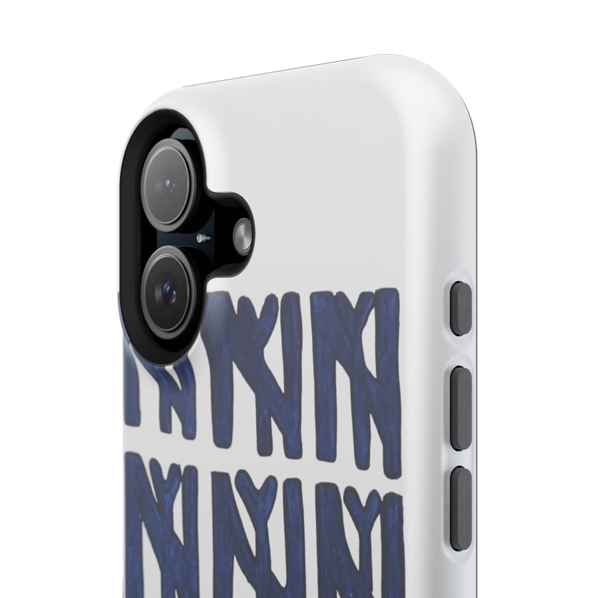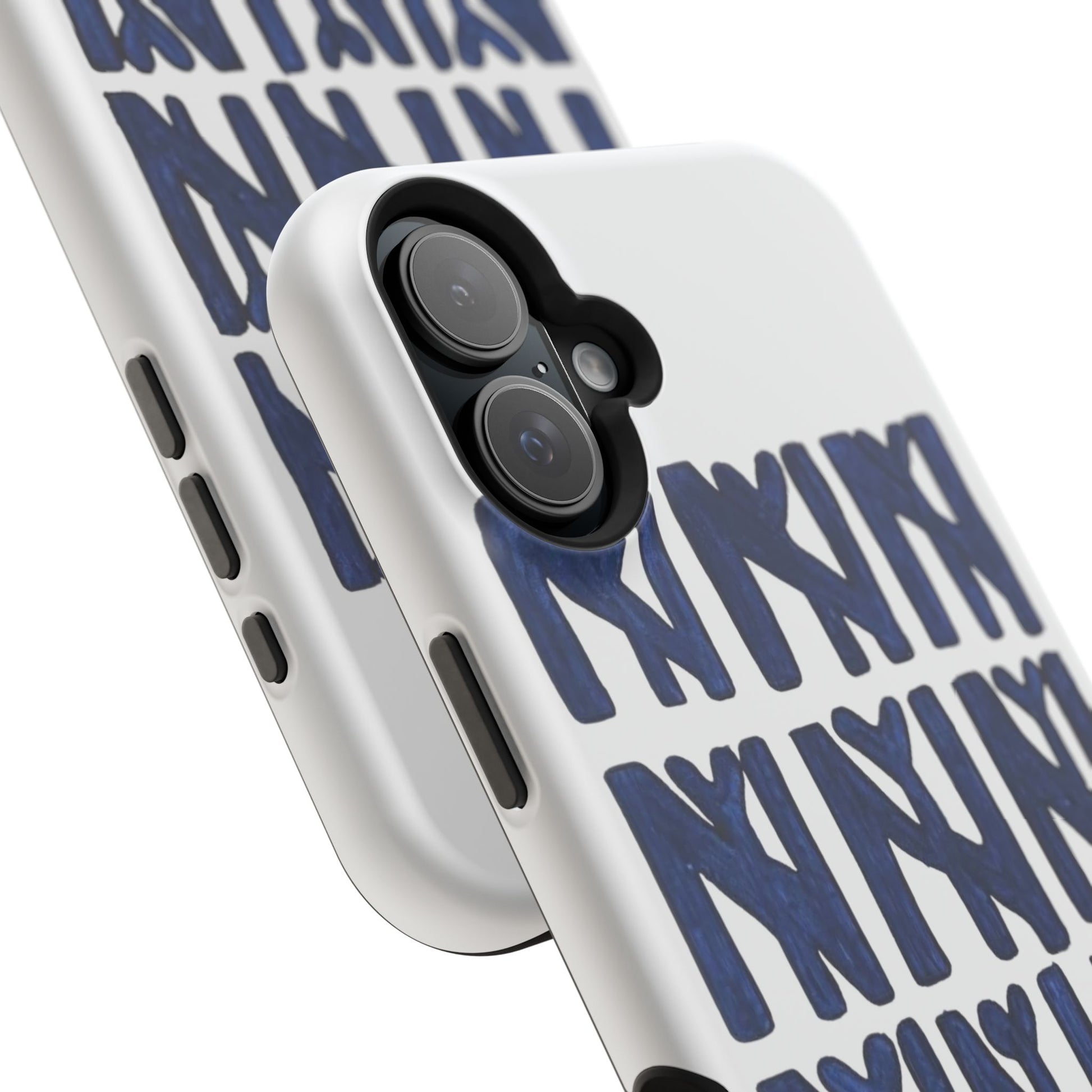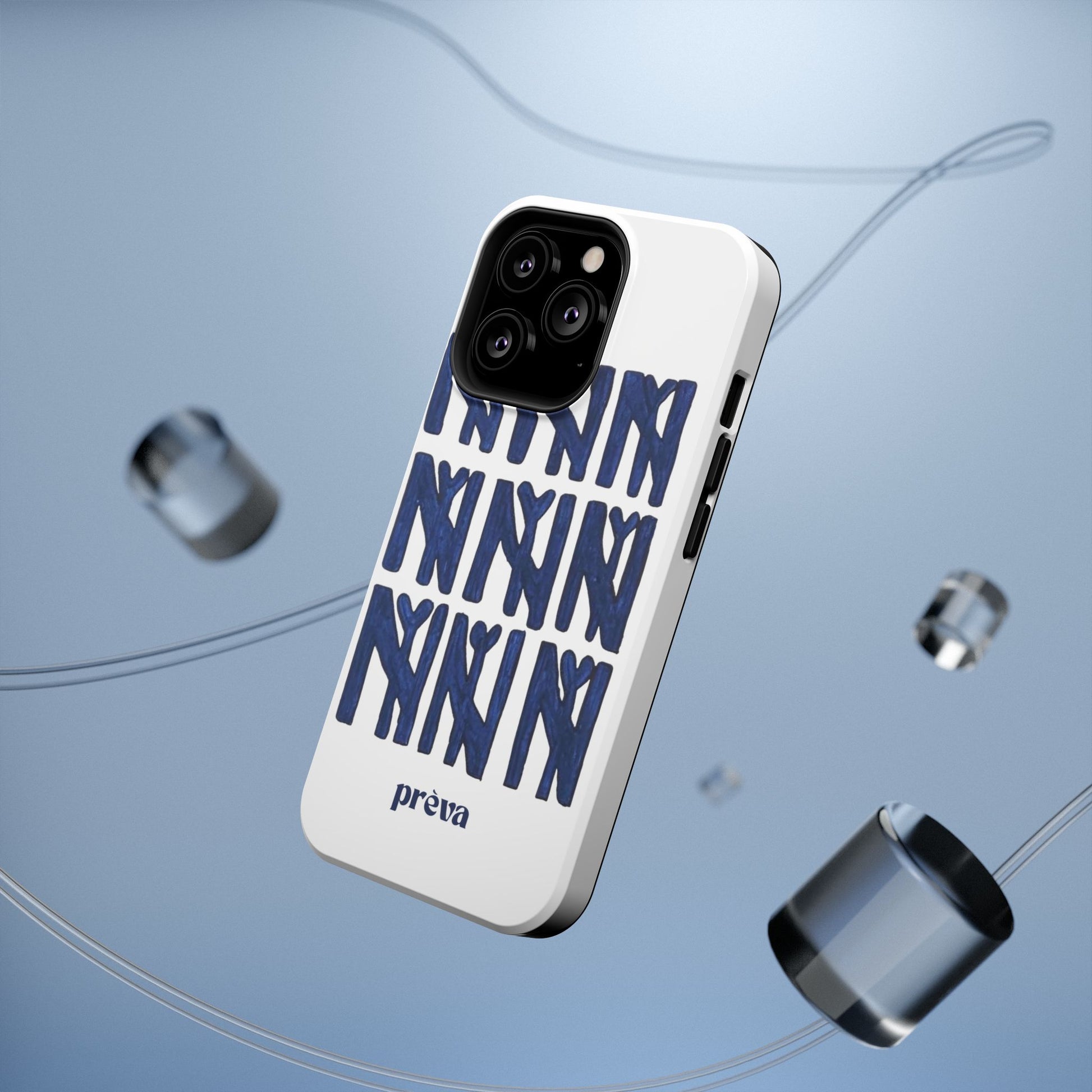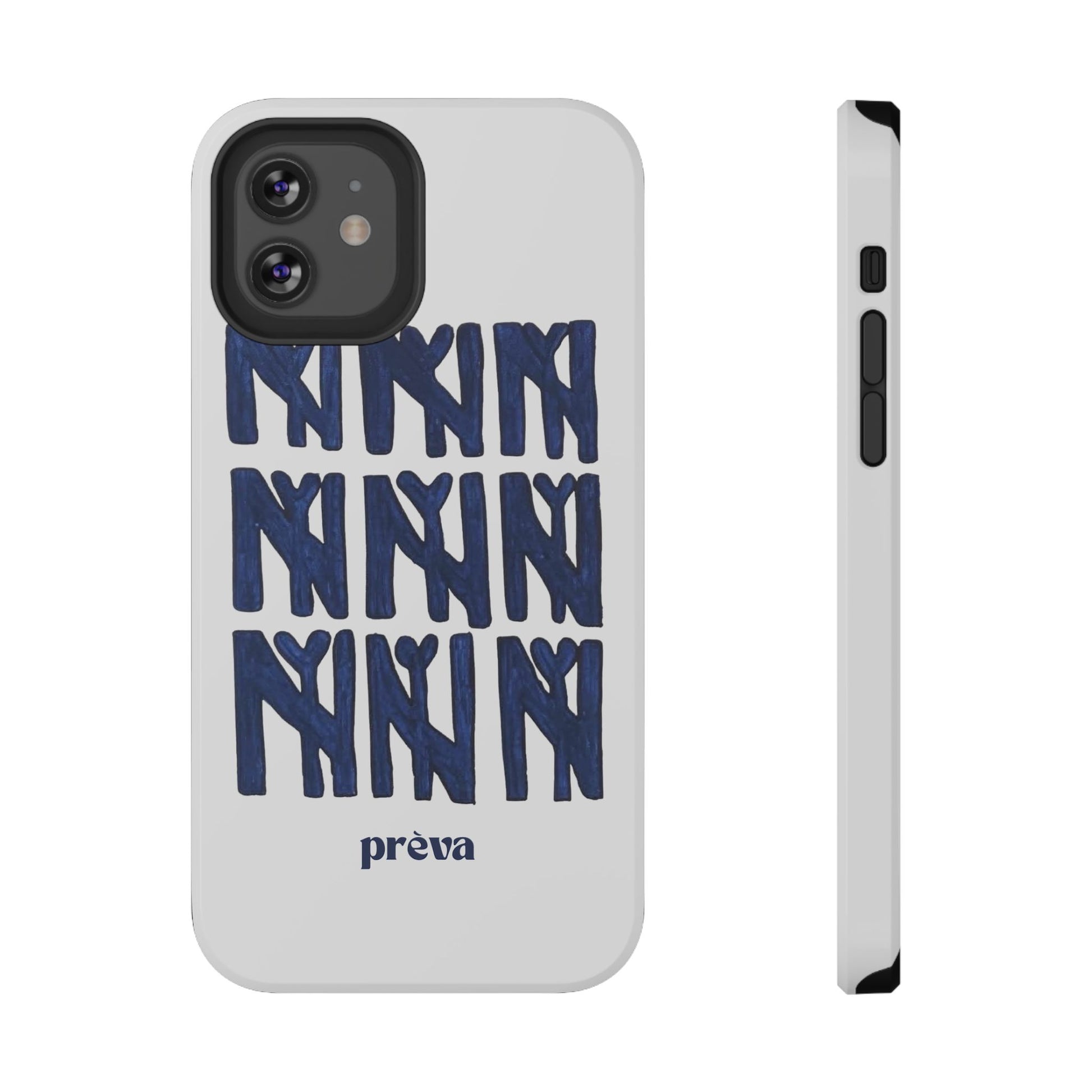 A sleek, protective phone case that balances serious defense with playful, handmade style. The dual-layer shell guards against everyday drops while the full-wrap print showcases a bold, hand-painted repeat motif in deep navy. It wears like an everyday tool—confident, artful, and quietly personal—so your phone looks as considered as the person holding it.